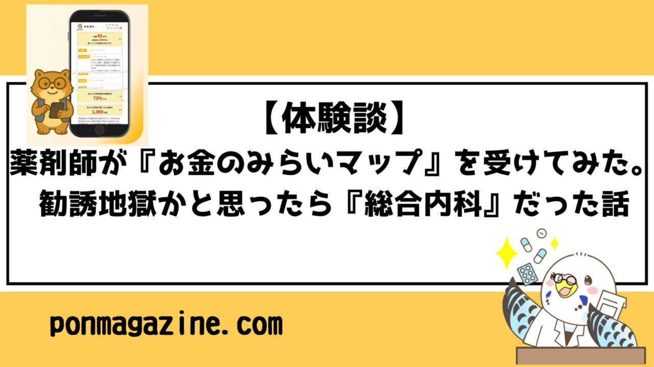 【体験談】薬剤師が『お金のみらいマップ』を受けてみた。勧誘地獄かと思ったら『総合内科』だった話
