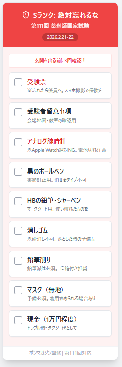 【第111回対応】薬剤師国家試験の持ち物リスト決定版!現役薬剤師が教える「当日の守り刀」